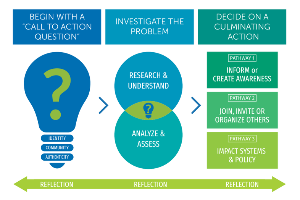 A helpful tool you can use when conducting Service Learning Projects is our Inquiry to Action Framework.